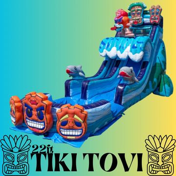 Bring the island adventure home! This detailed tropical showstopper features towering tiki totems, bright palm trees, bamboo accents, and a thrilling 22-foot drop into a refreshing splash zone. With bold colors and eye-catching designs, the Tiki Tovi Slide is perfect for luaus, summer parties, and anyone ready for nonstop island fun!