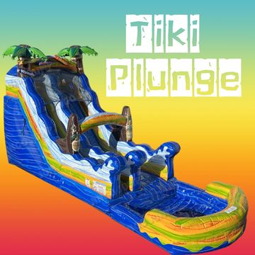 Bring paradise to your party! This tropical 18-foot slide features bright island colors, palm trees, and a fast, refreshing splash at the bottom. Perfect for beating the heat and turning any backyard into a summer getaway!